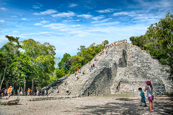 • Visitar la zona arqueológica de Cobá y andar en bicicleta por dentro de la área de las ruinas y que es único en el mundo donde puedes hacer este recorrido en dos ruedas. Si no sabes montar en bicicleta podrás alquilar un triciclo (limosina maya) que te llevará cómodamente a recorrer todo el lugar.