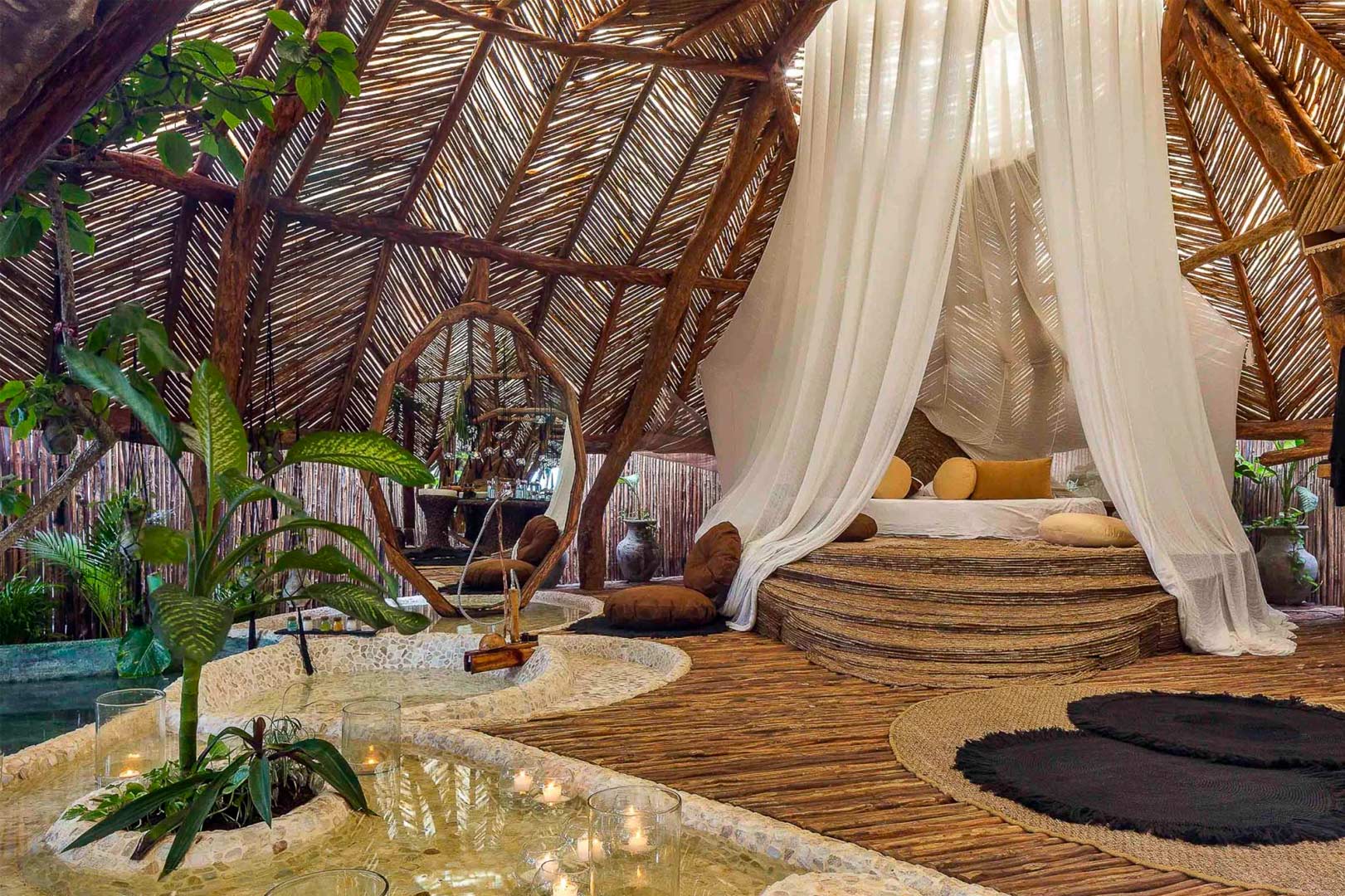 Los hoteles de buen gusto con decoraciones y conceptos que van de la mano con la naturaleza, se encuentran en la zona hotelera de Tulum. Pegados a la playa y con servicio de cinco estrellas.
